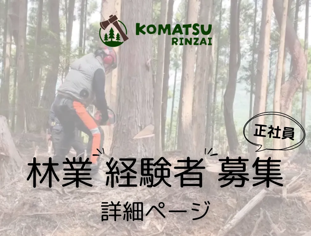 | 応募資格 | 学歴不問 ・林業経験者(伐採・重機操作の実務経験がある方歓迎) ・重機操作の資格をお持ちの方優遇 ・チームワークを重視し、効率的に作業を進められる方 ・普通自動車免許をお持ちの方 ※髪型・髪色自由 |
